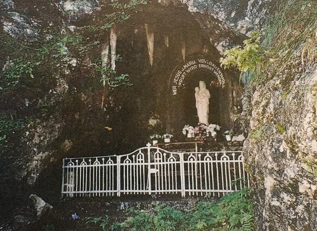 Auf der gegenüberliegenden Talseite (schattenhalb) befindet sich unter der "Weissen Wand" im Tobelwald ebenfalls eine Mariengrotte mit der Inschrift: "Wer Jesus und Maria vertrauensvoll anruft, wird erhört werden." Bei dieser Grotte handelt es sich nicht um eine Lourdesgrotte, aber dennoch um ein Kleinod, das nur Ortskundige kennen! Ein Fussweg führt über Rain oder Espel durch den Pfrundwald, über die Kuhweid und den Tobelwald zur Grotte (Richtung Engi, Thurtaler Stofel). Die Grotte wurde etwa 1930 im Auftrag der Familie Schlumpf, Hotel Rössli, vom Baumeister Waldburger aus dem Fels gehauen. Die Männerriege hat neulich diese Andachtsstätte restauriert. In der heutigen Pfarrkirche Alt St. Johann ist ein eindruckswolles Bild aus den Kriegsjahren: "Schutzmantelmadonna" von Jakob Häne, Kirchberg, über dem linken Seitenaltar, 1940.