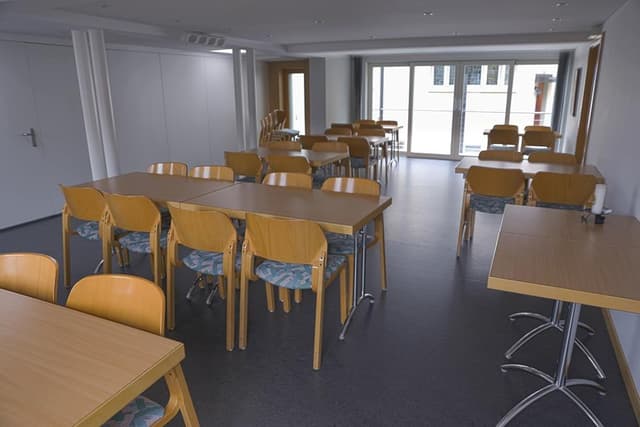Grösse: ca. 40 Sitzplätze Preis: Fr. 100.-- pro Tag / Fr. 75.-- für halben Tag oder Abend Da die beiden Säle durch eine mobile Wand voneinander getrennt sind, können sie bei Bedarf auch gemeinsam als grosser Saal (ca. 100 Plätze) genutzt werden. Preis: Fr. 200.-- pro Tag / Fr. 150.-- für halben Tag oder Abend Infrastruktur: Toilettenanlage, Garderobe, Aussenkinderspielplatz, Auto-Abstellplätze Küche: Gegen einen Aufpreis von Fr. 50.-- kann zusätzlich die Küche im Michaelshaus inkl. Geschirr (aber ohne Geschirrspüler) genutzt werden.