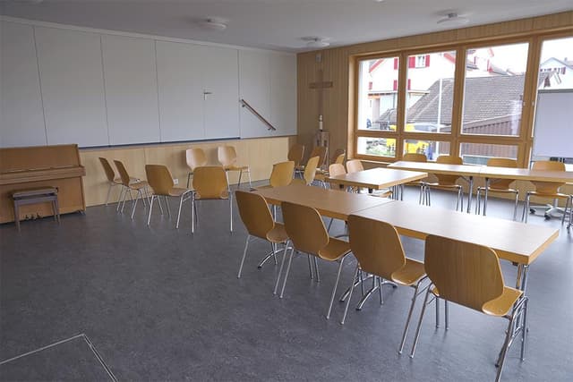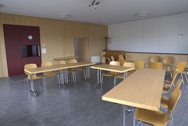 Grösse: ca. 60 Sitzplätze Preis: Fr. 150.-- pro Tag / Fr. 100.-- für halben Tag oder Abend Da die beiden Säle durch eine mobile Wand voneinander getrennt sind, können sie bei Bedarf auch gemeinsam als grosser Saal (ca. 100 Plätze) genutzt werden. Preis: Fr. 200.-- pro Tag / Fr. 150.-- für halben Tag oder Abend Infrastruktur: Multimedia-Anlage mit Beamer, fixe Leinwand, Mikrofon, Hellraumprojektor, Flipchart, DVD-Player, Musikanlage, Klavier, Toilettenanlage inkl. rollstuhlgerechtes WC, Garderobe, Aussenkinderspielplatz, Auto-Abstellplätze Für Fragen steht Ihnen die Mesmerin von Ebnat-Kappel gerne per Email (mesmer-ek@seotog.ch) zur Verfügung.